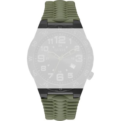 Ce bracelet de montre Guessest fait de caoutchouc / Silicone et est attaché à la montre au moyen de Épingles à ressort. Le bracelet a une taille de 30 mm et se ferme au moyen d'un boucle. Le bracelet n'a pas de support droit, ce qui signifie que ce bracelet convient uniquement aux montres énumérées ci-dessous.