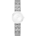 Ce bracelet de montre Guessest fait de acier inoxydable et est attaché à la montre au moyen de goupilles en acier. Le bracelet a une taille de 14 mm et se ferme au moyen d'un fermoir bijoux. Le bracelet n'a pas de support droit, ce qui signifie que ce bracelet convient uniquement aux montres énumérées ci-dessous.