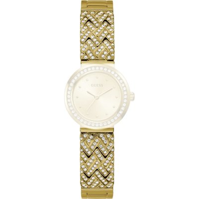 Ce bracelet de montre Guessest fait de métal et est attaché à la montre au moyen de goupilles en acier. Le bracelet a une taille de 14 mm et se ferme au moyen d'un fermoir bijoux. Le bracelet n'a pas de support droit, ce qui signifie que ce bracelet convient uniquement aux montres énumérées ci-dessous.