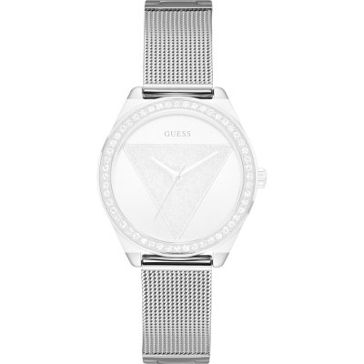 Ce bracelet de montre Guessest fait de métal et est attaché à la montre au moyen de Épingles à ressort. Le bracelet a une taille de 16 mm et se ferme au moyen d'un fermoir milanais. Le bracelet n'a pas de support droit, ce qui signifie que ce bracelet convient uniquement aux montres énumérées ci-dessous.