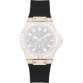 Ce bracelet de montre Guessest fait de silicone et est attaché à la montre au moyen de Épingles à ressort. Le bracelet a une taille de 24 mm et se ferme au moyen d'un boucle. Le bracelet n'a pas de support droit, ce qui signifie que ce bracelet convient uniquement aux montres énumérées ci-dessous.