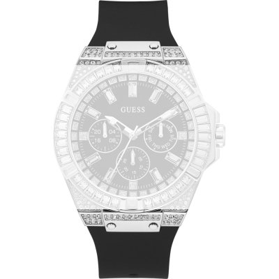 Ce bracelet de montre Guessest fait de silicone et est attaché à la montre au moyen de Épingles à ressort. Le bracelet a une taille de 29 mm et se ferme au moyen d'un boucle. Le bracelet n'a pas de support droit, ce qui signifie que ce bracelet convient uniquement aux montres énumérées ci-dessous.