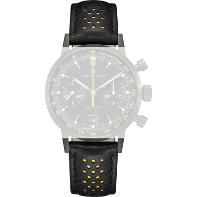 Ce bracelet de montre Hamiltonest fait de cuir et est attaché à la montre au moyen de Épingles à ressort. Le bracelet a une taille de 20 mm et se ferme au moyen d'un boucle. Le bracelet est doté d'une monture droite, ce qui signifie qu'il convient à toutes les montres de la Hamilton dotées d'une monture droite..