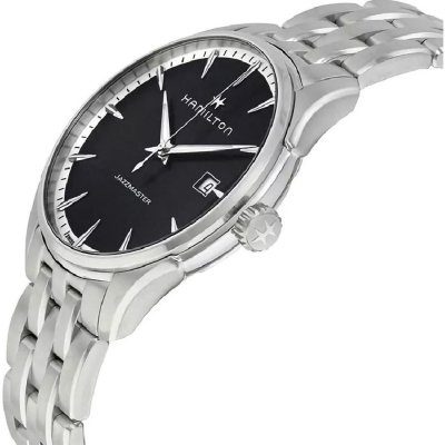 Cette montre Hamilton a un boîtier Inox 40 mm en diamètre et est équipée d'un bracelet Inox. Le boîtier contient un mouvement ETA et la montre est dotée d'un cristal Saphire..