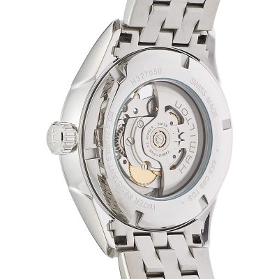 La Hamilton Jazzmaster Viewmatic équilibre parfaitement le formel et le sport en combinant un boîtier magnifiquement fini avec un mélange de surfaces polies et brossées et un cadran à cœur ouvert intrigant affichant les éléments mécaniques qui battent en dessous. Les découpes superbement exécutées dans le cadran ont une lunette très polie passant brusquement à un bord intérieur brossé, dirigeant l'œil vers le mouvement automatique H-10. Ce mouvement Hamilton très précis contient un spiral Nivachron non magnétique et dispose d'une réserve de marche de pas moins de 80 heures. La Jazzmaster Viewmatic Open Heart Auto est disponible dans une gamme de couleurs et dans des tailles de boîtier de 40 mm et 36 mm, pour hommes et femmes.