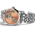 La Hamilton Jazzmaster Viewmatic équilibre parfaitement le formel et le sport en combinant un boîtier magnifiquement fini avec un mélange de surfaces polies et brossées et un cadran à cœur ouvert intrigant affichant les éléments mécaniques qui battent en dessous. Les découpes superbement exécutées dans le cadran ont une lunette très polie passant brusquement à un bord intérieur brossé, dirigeant l'œil vers le mouvement automatique H-10. Ce mouvement Hamilton très précis contient un spiral Nivachron non magnétique et dispose d'une réserve de marche de pas moins de 80 heures. La Jazzmaster Viewmatic Open Heart Auto est disponible dans une gamme de couleurs et dans des tailles de boîtier de 40 mm et 36 mm, pour hommes et femmes.