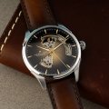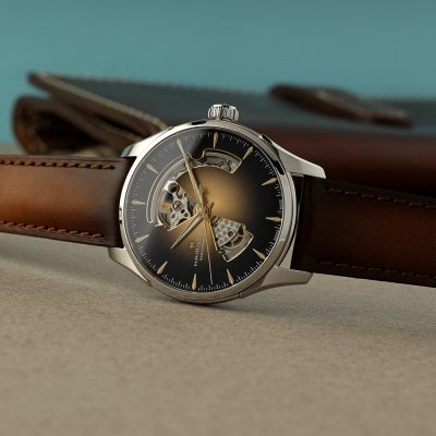 Cette montre Hamilton a un boîtier Inox 40 mm en diamètre et est équipée d'un bracelet cuir. Le boîtier contient un mouvement ETA et la montre est dotée d'un cristal Saphir antireflet unique..