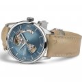 La Hamilton Jazzmaster Viewmatic équilibre parfaitement le formel et le sport en combinant un boîtier magnifiquement fini avec un mélange de surfaces polies et brossées et un cadran à cœur ouvert intrigant affichant les éléments mécaniques qui battent en dessous. Les découpes superbement exécutées dans le cadran ont une lunette très polie passant brusquement à un bord intérieur brossé, dirigeant l'œil vers le mouvement automatique H-10. Ce mouvement Hamilton très précis contient un spiral Nivachron non magnétique et dispose d'une réserve de marche de pas moins de 80 heures. La Jazzmaster Viewmatic Open Heart Auto est disponible dans une gamme de couleurs et dans des tailles de boîtier de 40 mm et 36 mm, pour hommes et femmes.