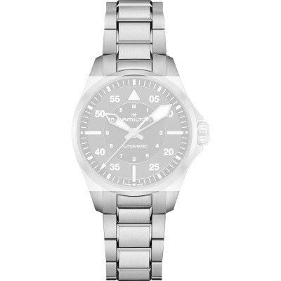 Ce bracelet de montre Hamiltonest fait de acier inoxydable et est attaché à la montre au moyen de Épingles à ressort à dégagement rapide. Le bracelet a une taille de 18 mm et se ferme au moyen d'un boucle déployante avec boutons poussoirs. Le bracelet n'a pas de support droit, ce qui signifie que ce bracelet convient uniquement aux montres énumérées ci-dessous.