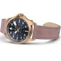 La Khaki Aviation Pilot Auto est un exemple classique de montre de pilote et un ajout précieux à la collection Khaki. La montre présente une lunette relativement fine sur un boîtier de 36 mm, ce qui laisse beaucoup d'espace pour le cadran au design clair. L'aiguille des heures squelette en forme d'épée révèle astucieusement l'heure dans l'anneau central du cadran, tandis que l'aiguille des minutes à pointe lumineuse pointe vers l'anneau extérieur avec des chiffres agrandis. Un triangle lumineux à 12 heures et des index lumineux à 3, 6 et 9 heures ajoutent une touche rétro de style aviateur à ce cadran très lisible. Animée par le mouvement automatique H-10 avec une réserve de marche de 80 heures et un spiral Nivachron™, cette montre est si cool et si bien pensée qu'elle plaira aux hommes et aux femmes qui aiment le style militaire kaki intemporel.