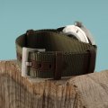 La Khaki Field Expedition vous permet de naviguer lors de votre prochaine excursion avec l'aide du soleil. Trouvez un endroit ensoleillé et tenez la montre à plat. Si vous vous trouvez dans l'hémisphère nord, dirigez l'aiguille des heures vers le soleil, puis tournez la lunette de manière à ce que le repère "S" (sud) se trouve à mi-chemin entre l'aiguille des heures et la position 12 heures. La lunette est ainsi réglée, ce qui permet de lire les autres directions cardinales (nord, est, ouest) sur l'échelle de la lunette. Dans l'hémisphère sud, il faut placer le repère Nord à mi-chemin entre l'aiguille des heures et 12 heures.