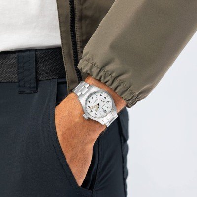 La collection Khaki de Hamilton s'est enrichie de la Khaki Field Mechanical Power Reserve. Il s'agit d'une montre de terrain militaire classique et utilitaire, dans la lignée de l'héritage militaire de Hamilton depuis 1914, connue pour sa robustesse et sa fiabilité. En plus de cet héritage, Hamilton présente aujourd'hui la première Khaki Field dotée d'un indicateur de réserve de marche sur le cadran. La montre est animée par le nouveau mouvement H-23, développé par ETA en exclusivité pour Hamilton, et est la première Khaki Field à disposer d'une impressionnante réserve de marche de 80 heures. Fidèle à ses racines utilitaires, comme une jeep militaire, l'échelle de réserve de marche sur le cadran n'indique que "F" pour pleine et "E" pour vide. Elle est accompagnée d'échelles militaires claires de 12 et 24 heures, d'aiguilles seringues lumineuses et d'index rendus dans un brun patiné vintage chaleureux, donnant à la montre l'aspect parfait d'une montre militaire vintage avec la technologie moderne.