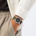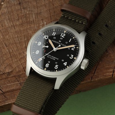La collection Khaki de Hamilton s'est enrichie de la Khaki Field Mechanical Power Reserve. Il s'agit d'une montre de terrain militaire classique et utilitaire, dans la lignée de l'héritage militaire de Hamilton depuis 1914, connue pour sa robustesse et sa fiabilité. En plus de cet héritage, Hamilton présente aujourd'hui la première Khaki Field dotée d'un indicateur de réserve de marche sur le cadran. La montre est animée par le nouveau mouvement H-23, développé par ETA en exclusivité pour Hamilton, et est la première Khaki Field à disposer d'une impressionnante réserve de marche de 80 heures. Fidèle à ses racines utilitaires, comme une jeep militaire, l'échelle de réserve de marche sur le cadran n'indique que "F" pour pleine et "E" pour vide. Elle est accompagnée d'échelles militaires claires de 12 et 24 heures, d'aiguilles seringues lumineuses et d'index rendus dans un brun patiné vintage chaleureux, donnant à la montre l'aspect parfait d'une montre militaire vintage avec la technologie moderne.