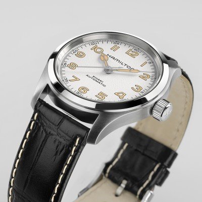 La Khaki Field "Murph" est devenue extrêmement populaire lorsque la montre est apparue dans le film "Interstellar". Aujourd'hui, la Murph est de retour dans une taille plus petite (38 mm au lieu de 42 mm) et avec un cadran noir ou blanc très contrasté. Les deux variantes représentent l'univers sans fin qui ne demande qu'à être exploré ! Animée par un mouvement automatique H-10 (sans date) doté d'une réserve de marche exceptionnelle de 80 heures, cette nouvelle venue dans la famille Murph séduira les hommes (et les femmes) pour qui la variante de 42 mm était peut-être un peu trop grande.