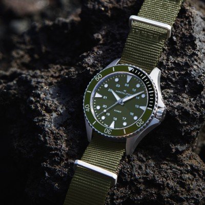 Cette montre Hamilton a un boîtier Inox 37 mm en diamètre et est équipée d'un bracelet Textile. Le boîtier contient un mouvement ETA et la montre est dotée d'un cristal Saphir antireflet unique..
