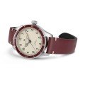 La Khaki Pilot Pioneer est un hommage au modèle 23, une montre de poche utilisée par les soldats américains pendant la Seconde Guerre mondiale, dont Hamilton a fourni plus de 27 000 exemplaires aux forces armées américaines ! Du cadran blanc texturé et des aiguilles cathédrales à la lunette verte et au bracelet en cuir assorti, chaque détail rappelle l'héritage de cette montre. Elle capture l'esprit des aviateurs pionniers de la guerre, tout en se faisant le champion de la fiabilité moderne et d'une touche rétro très tendance. Le calibre Hamilton H10 (basé sur le fiable ETA 2824) offre une importante réserve de marche de 80 heures. Le cadran grainé blanc coquille d'œuf présente des chiffres arabes, une minuterie "chemin de fer" et des aiguilles cathédrale nickelées. Le SuperLuminova sur les aiguilles et les repères de la lunette assure la visibilité dans des conditions de faible luminosité. Le verre saphir bombé inrayable renforce l'attrait rétro de la montre. La lunette verte de l'échelle du compte à rebours, dotée d'un insert en verre minéral et dont la couleur est coordonnée à celle du bracelet en cuir souple, ajoute encore à l'esthétique de la montre. Avec ses 38 mm, la montre est confortable pour la plupart des poignets. Ainsi, que vous soyez un passionné d'histoire de l'aviation ou quelqu'un qui apprécie une élégante montre de style militaire, la Khaki Pilot Pioneer est à la hauteur de l'apparence, de la sensation et de la fiabilité.