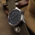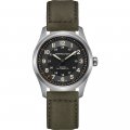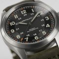 Cette montre Hamilton a un boîtier Titane 38 mm en diamètre et est équipée d'un bracelet cuir. Le boîtier contient un mouvement ETA et la montre est dotée d'un cristal Saphire..