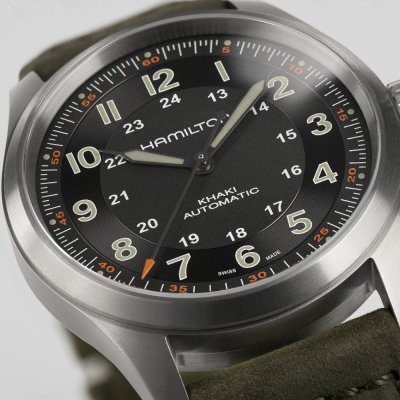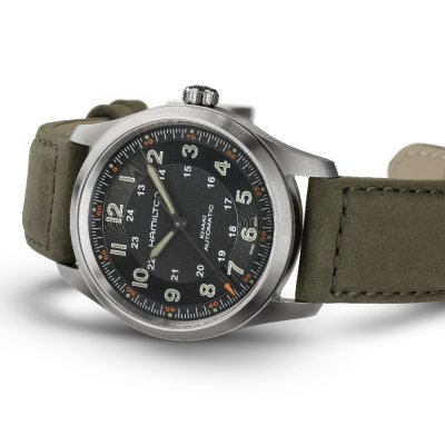 Forte de ses 100 ans d'expérience dans la fabrication de montres pour l'armée, Hamilton sait comment fabriquer des montres de terrain attrayantes et pratiques qui peuvent tout supporter, des situations de survie à une journée intense de réunions au bureau. La Khaki Field Titanium Automatic est une montre de terrain traditionnelle qui présente de nombreux détails, comme la minuterie complexe et la gravure derrière les index. Son style sportif des années 1960 et 1970, avec ses courbes douces et son boîtier brossé, empêche la montre de paraître trop habillée. D'autre part, les couleurs sourdes et les bracelets en cuir souple atténuent le caractère militaire de la montre. Bien entendu, le boîtier est en titane, qui pèse nettement moins lourd que l'acier inoxydable habituel, ce qui se ressent au poignet. La montre est équipée d'un mécanisme Hamilton H-10 d'une autonomie de 80 heures et d'un balancier-spiral Nivachron pour la performance et la résistance magnétique. La Khaki Field Titanium Automatic est disponible en 38 mm et 42 mm, ce qui lui confère un attrait moderne, tout en conservant le charme classique des activités de plein air.