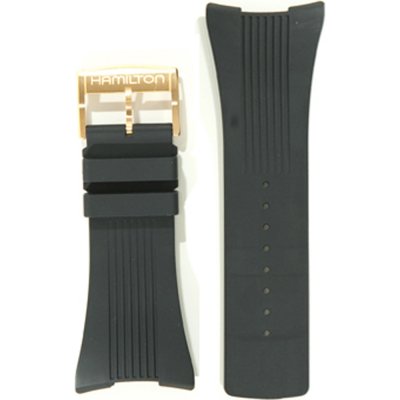 Ce bracelet de montre Hamiltonest fait de caoutchouc et est attaché à la montre au moyen de goupilles en acier. Le bracelet a une taille de 36 mm et se ferme au moyen d'un boucle. Le bracelet n'a pas de support droit, ce qui signifie que ce bracelet convient uniquement aux montres énumérées ci-dessous.