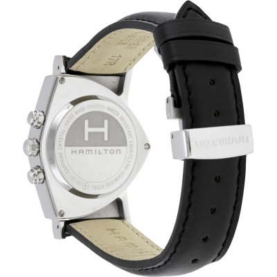 Cette montre Hamilton a un boîtier Inox 32.3 mm en diamètre et est équipée d'un bracelet cuir. Le boîtier contient un mouvement ETA et la montre est dotée d'un cristal Saphire..