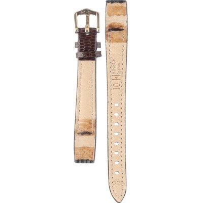 Ce bracelet de montre Hirschest fait de cuir et est attaché à la montre au moyen de aucun(e). Le bracelet a une taille de 14 mm et se ferme au moyen d'un boucle. Le bracelet n'a pas de support droit, ce qui signifie que ce bracelet convient uniquement aux montres énumérées ci-dessous.