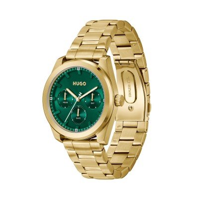 Cette montre Hugo Boss a un boîtier Inox 42 mm en diamètre et est équipée d'un bracelet Inox. Le boîtier contient un mouvement Seiko Instruments Inc. et la montre est dotée d'un cristal Minéral..