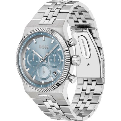 Cette montre Hugo Boss a un boîtier Inox 41 mm en diamètre et est équipée d'un bracelet Inox. Le boîtier contient un mouvement Seiko Instruments Inc. et la montre est dotée d'un cristal Minéral..