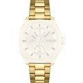 Ce bracelet de montre Hugo Bossest fait de acier inoxydable et est attaché à la montre au moyen de Épingles à ressort. Le bracelet a une taille de 22 mm et se ferme au moyen d'un boucle déployante avec boutons poussoirs. Le bracelet n'a pas de support droit, ce qui signifie que ce bracelet convient uniquement aux montres énumérées ci-dessous.