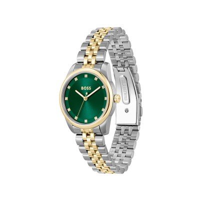 Cette montre Hugo Boss a un boîtier Inox 32 mm en diamètre et est équipée d'un bracelet Inox. Le boîtier contient un mouvement Miyota et la montre est dotée d'un cristal Minéral..