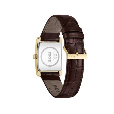 Cette montre Hugo Boss a un boîtier Inox 28 mm en diamètre et est équipée d'un bracelet cuir. Le boîtier contient un mouvement Seiko Instruments Inc. et la montre est dotée d'un cristal Minéral..