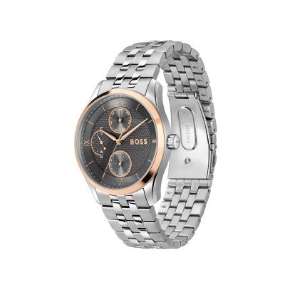Cette montre Hugo Boss a un boîtier Inox 41 mm en diamètre et est équipée d'un bracelet Inox. Le boîtier contient un mouvement Seiko Instruments Inc. et la montre est dotée d'un cristal Minéral..