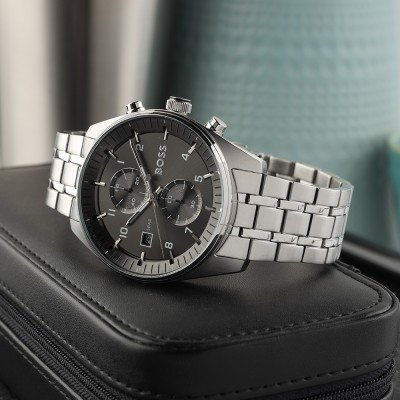 Cette montre Hugo Boss a un boîtier Inox 44 mm en diamètre et est équipée d'un bracelet Inox. Le boîtier contient un mouvement Seiko Instruments Inc. et la montre est dotée d'un cristal Minéral..