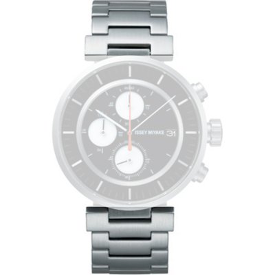 Ce bracelet de montre Issey Miyakeest fait de acier inoxydable et est attaché à la montre au moyen de goupilles en acier. Le bracelet a une taille de 25 mm et se ferme au moyen d'un boucle papillon avec boutons poussoirs. Le bracelet n'a pas de support droit, ce qui signifie que ce bracelet convient uniquement aux montres énumérées ci-dessous.
