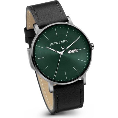 Cette montre Jacob Jensen a un boîtier Titane 40 mm en diamètre et est équipée d'un bracelet cuir. Le boîtier contient un mouvement Miyota et la montre est dotée d'un cristal Saphire..