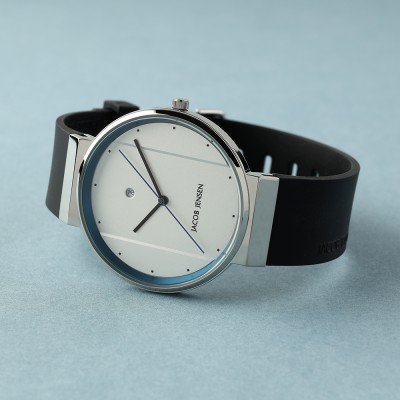 Cette montre Jacob Jensen a un boîtier Inox 39 mm en diamètre et est équipée d'un bracelet caoutchouc. Le boîtier contient un mouvement Ronda et la montre est dotée d'un cristal Minéral..