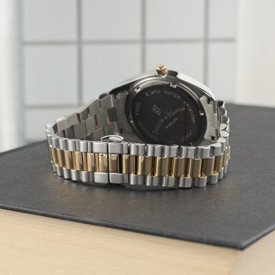 Cette montre Jacques du Manoir a un boîtier Inox 40 mm en diamètre et est équipée d'un bracelet Inox. Le boîtier contient un mouvement Ronda et la montre est dotée d'un cristal Minéral..