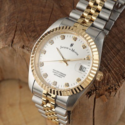 Cette montre Jacques du Manoir a un boîtier Inox 36 mm en diamètre et est équipée d'un bracelet Inox. Le boîtier contient un mouvement Ronda et la montre est dotée d'un cristal Minéral..