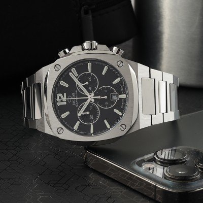 Cette montre Jaguar a un boîtier Inox 42.9 mm en diamètre et est équipée d'un bracelet Inox. Le boîtier contient un mouvement Ronda et la montre est dotée d'un cristal Saphire..