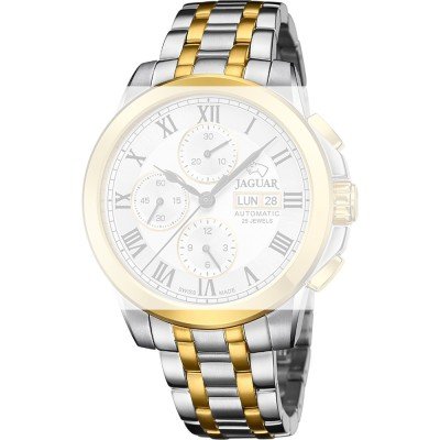 Ce bracelet de montre Jaguarest fait de acier inoxydable et est attaché à la montre au moyen de Épingles à ressort. Le bracelet a une taille de 21 mm et se ferme au moyen d'un boucle papillon avec boutons poussoirs. Le bracelet n'a pas de support droit, ce qui signifie que ce bracelet convient uniquement aux montres énumérées ci-dessous.
