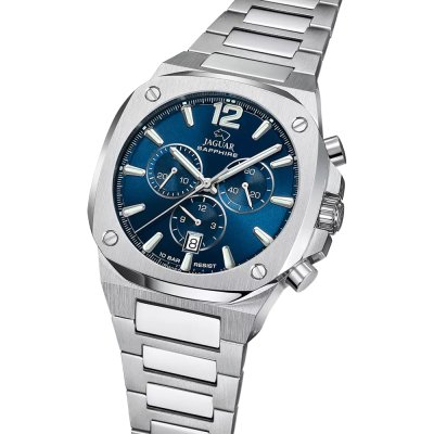 Cette montre Jaguar a un boîtier Inox 42.9 mm en diamètre et est équipée d'un bracelet Inox. Le boîtier contient un mouvement Ronda et la montre est dotée d'un cristal Saphire..