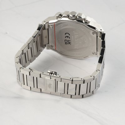 Cette montre Jaguar a un boîtier Inox 42.9 mm en diamètre et est équipée d'un bracelet Inox. Le boîtier contient un mouvement Ronda et la montre est dotée d'un cristal Saphire..