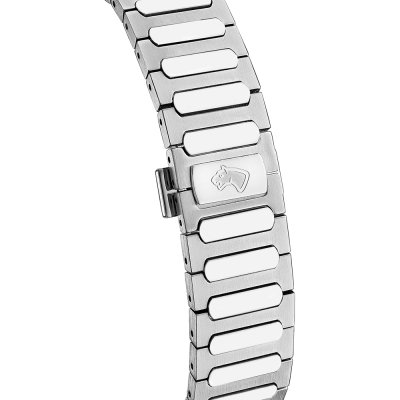Cette montre Jaguar a un boîtier Inox 41 mm en diamètre et est équipée d'un bracelet Inox. Le boîtier contient un mouvement Ronda et la montre est dotée d'un cristal Saphire..