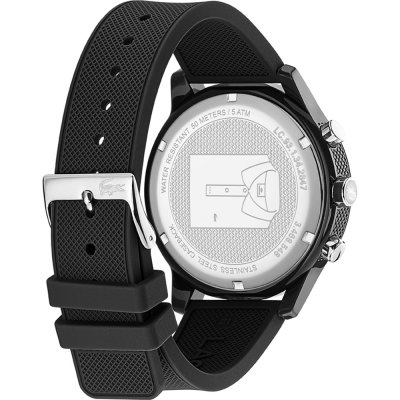 Cette montre Lacoste a un boîtier caoutchouc 43 mm en diamètre et est équipée d'un bracelet caoutchouc. Le boîtier contient un mouvement Seiko Instruments Inc. et la montre est dotée d'un cristal Minéral..