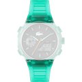 Ce bracelet de montre Lacosteest fait de résine et est attaché à la montre au moyen de goupilles en acier. Le bracelet a une taille de 24 mm et se ferme au moyen d'un boucle. Le bracelet n'a pas de support droit, ce qui signifie que ce bracelet convient uniquement aux montres énumérées ci-dessous.