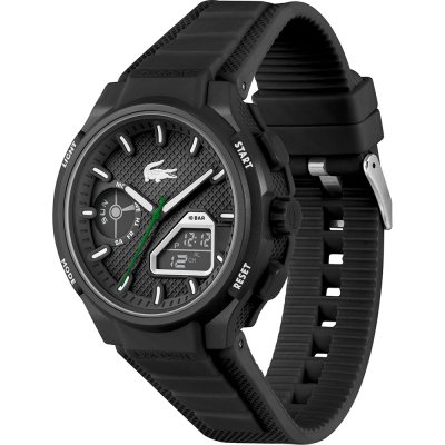 Cette montre Lacoste a un boîtier Résine 45 mm en diamètre et est équipée d'un bracelet caoutchouc. Le boîtier contient un mouvement Seiko et la montre est dotée d'un cristal Minéral..