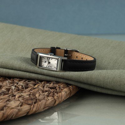 Cette montre LIP a un boîtier Inox 13 mm en diamètre et est équipée d'un bracelet cuir. Le boîtier contient un mouvement Ronda et la montre est dotée d'un cristal Minéral..