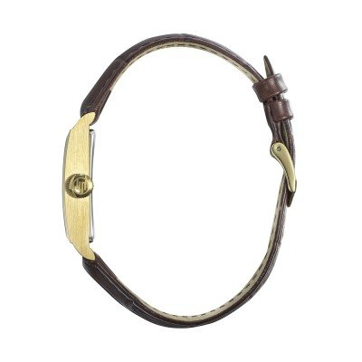Cette montre LIP a un boîtier Inox 21 mm en diamètre et est équipée d'un bracelet cuir. Le boîtier contient un mouvement Ronda et la montre est dotée d'un cristal Minéral..
