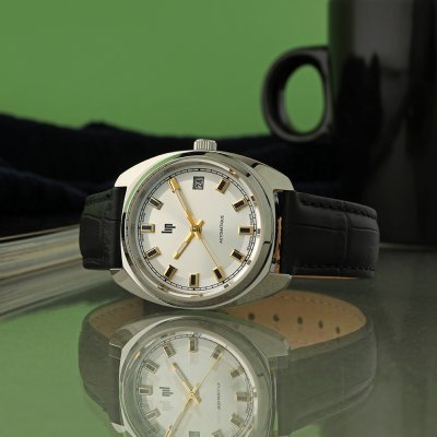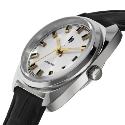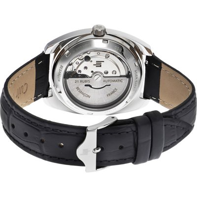 Cette montre LIP a un boîtier Inox 35 mm en diamètre et est équipée d'un bracelet cuir. Le boîtier contient un mouvement Miyota et la montre est dotée d'un cristal Saphir antireflet unique..