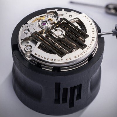 Au début des années 1930, LIP a créé la montre d'avion Type 14. Son boîtier robuste est fabriqué dans un alliage léger et le remontage ainsi que la mise à l'heure se font au moyen d'une lunette cannelée, ce qui facilite la prise en main, même avec des gants. Le mécanisme était monté sur les tableaux de bord des avions de chasse de l'armée de l'air française de l'époque, qui ont également fonctionné pendant la Seconde Guerre mondiale. La nouvelle montre Type 14 s'inspire de ce célèbre garde-temps. Elle est dotée d'une lunette tournante interne bidirectionnelle, activée par la couronne dédiée positionnée à 2 heures. Comme la lunette d'origine, qui était vissée sur le tableau de bord, elle comporte un index triangulaire destiné à fournir un point de référence pour la mesure du temps, si typique des montres d'aviateur. Le cadran noir, très lisible grâce à la présence de chiffres et d'aiguilles luminescents, présente une surface finement texturée, semblable à celle d'un tarmac d'aéroport. Toutes les montres Type 14 sont numérotées individuellement, bien qu'elles ne soient pas produites en série limitée.