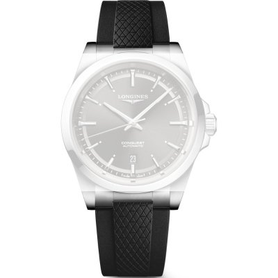 Ce bracelet de montre Longinesest fait de caoutchouc et est attaché à la montre au moyen de Épingles à ressort. Le bracelet a une taille de 21 mm. Le bracelet est doté d'une monture droite, ce qui signifie qu'il convient à toutes les montres de la Longines dotées d'une monture droite..